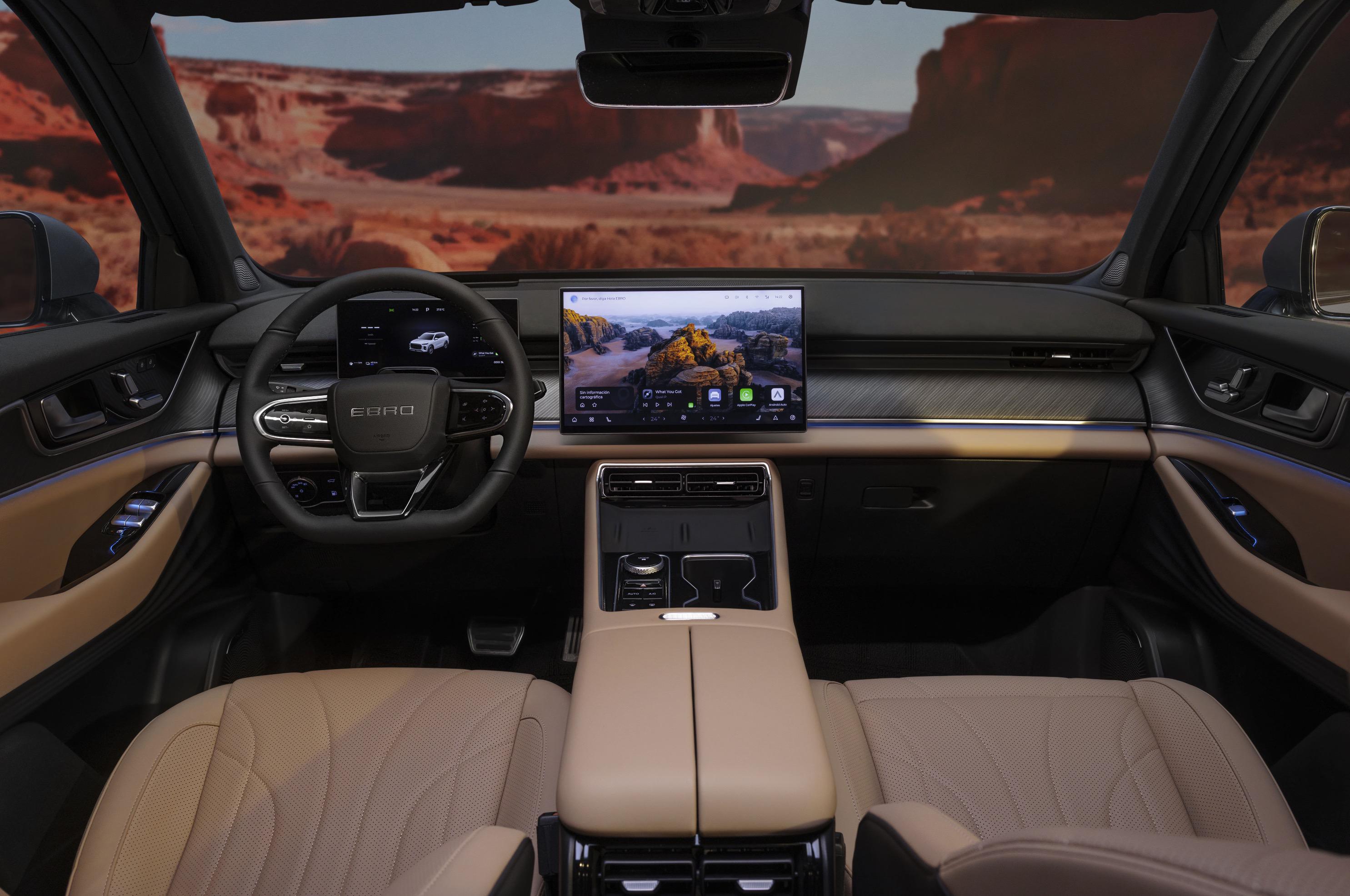 - Es el primer modelo EBRO desarrollado sobre la plataforma T2X-E del Grupo Chery, una arquitectura modular multienergía diseñada para vehículos medio-grandes con diferentes sistemas de propulsión electrificados.