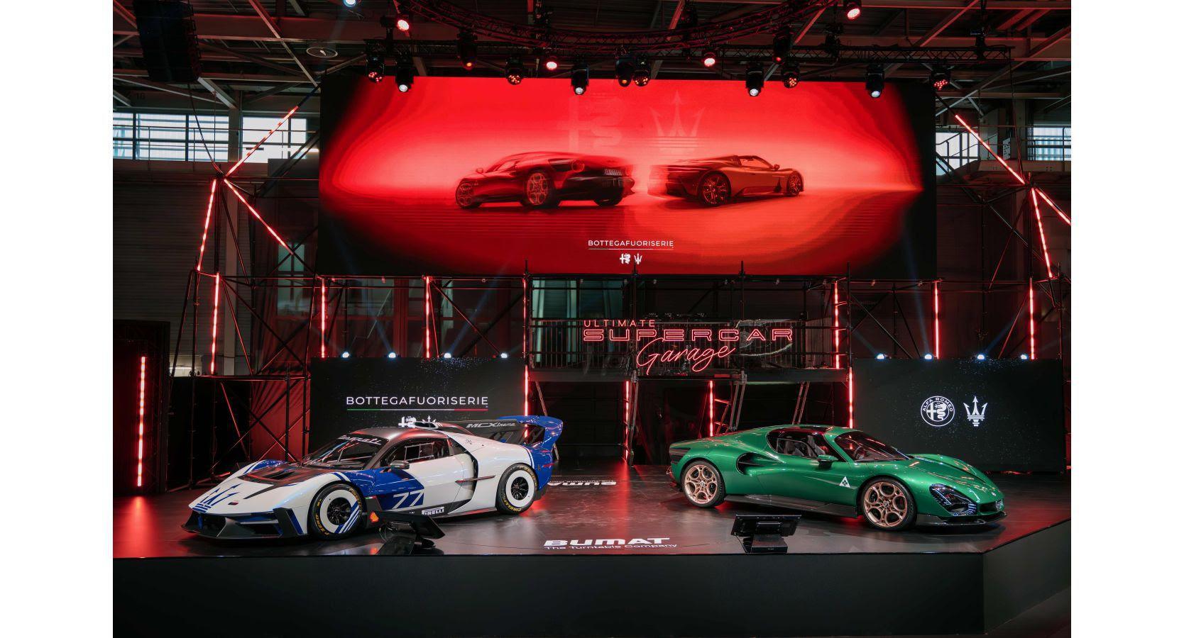 Alfa Romeo y Maserati comparten por primera vez escenario en el salón Ultimate Supercar Garage.