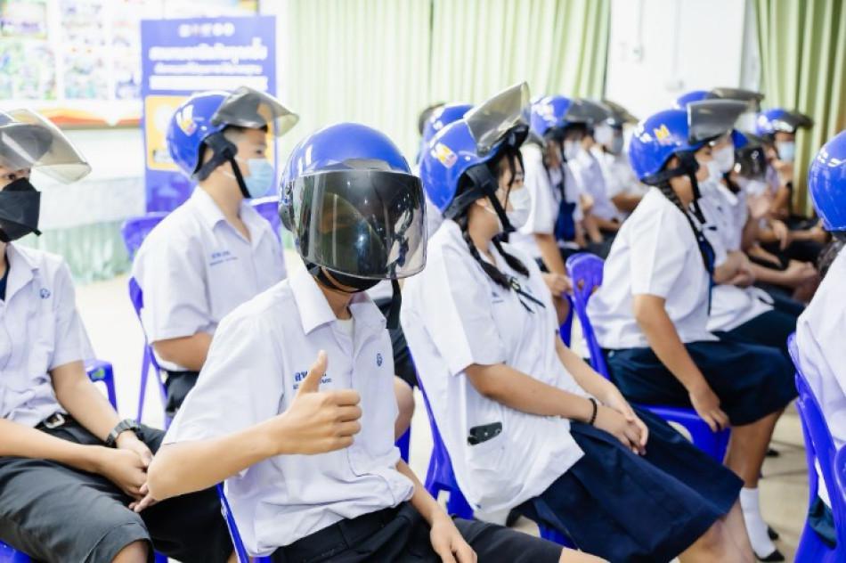 Los cascos se entregaron en cuatro escuelas secundarias de Bangkok situadas en zonas de alto riesgo de accidentes.