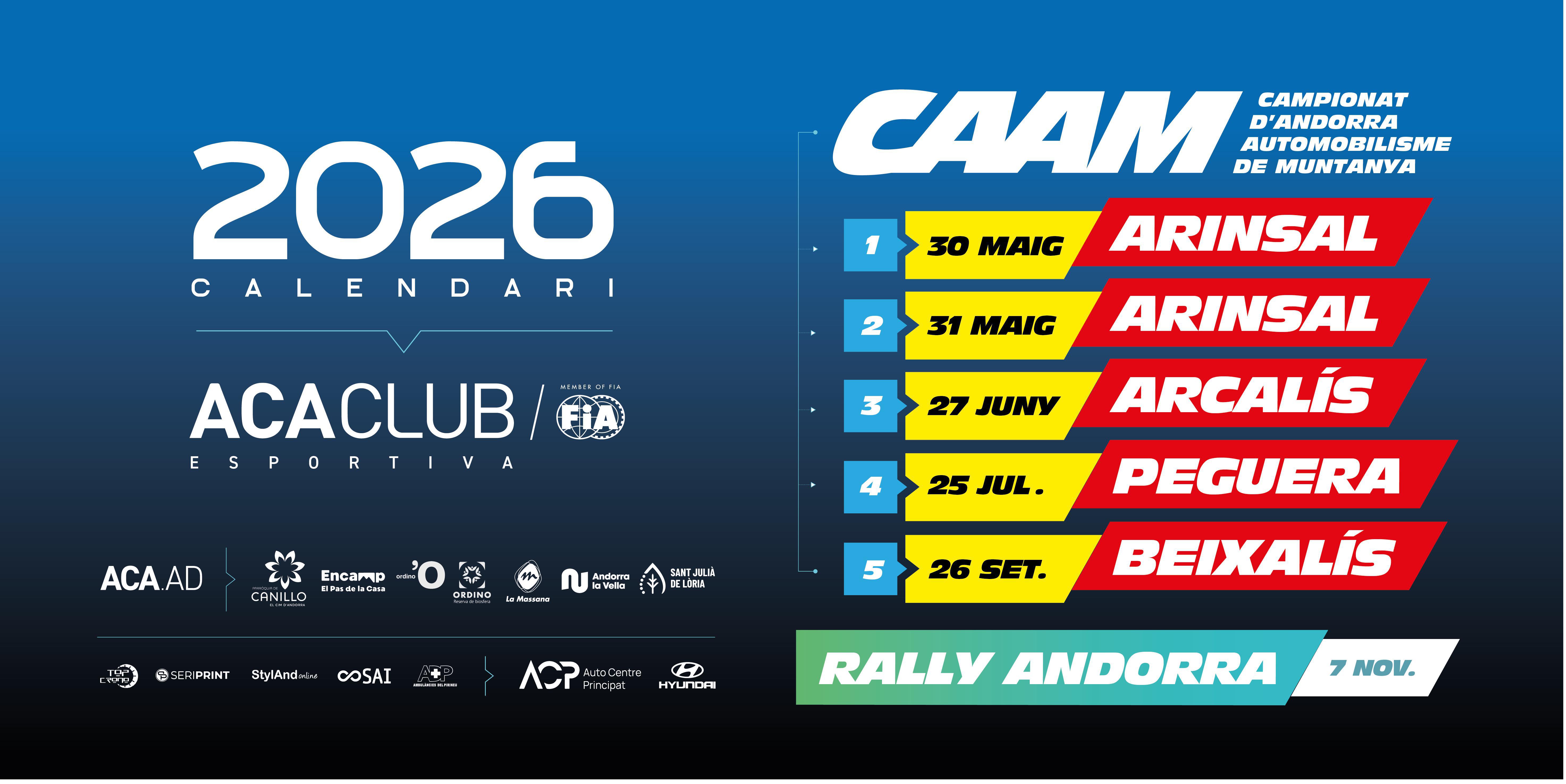 El Automóvil Club de Andorra (ACA CLUB) ha hecho públicos los documentos oficiales que regirán el Campeonato de Andorra de Automovilismo de Montaña (CAAM) 2026: el Reglamento Deportivo, el Reglamento Técnico y la nueva normativa de licencias.