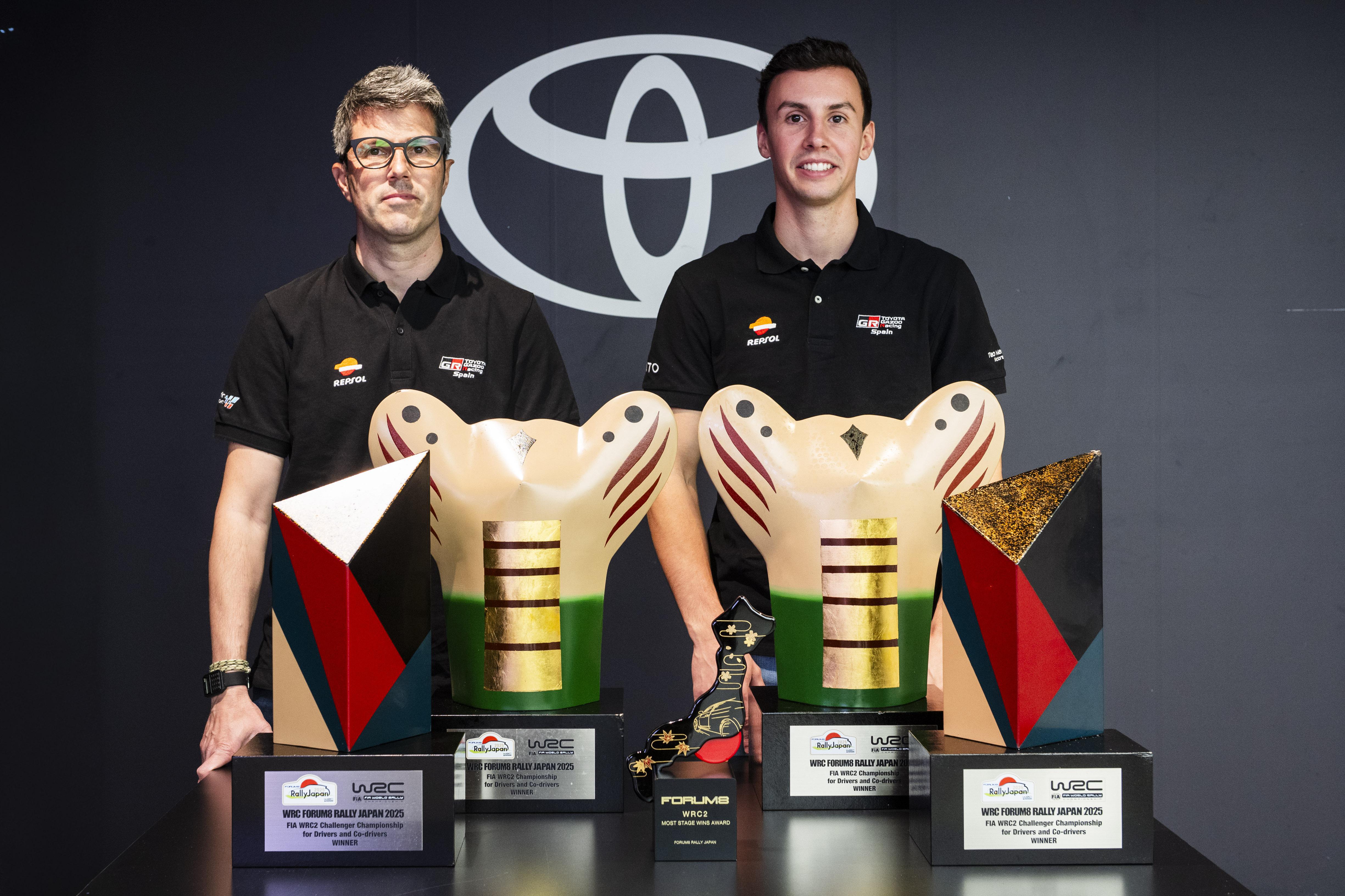 Alejandro Cachón y Borja Rozada han escrito una página dorada en su trayectoria deportiva al conquistar su primera victoria en el WRC2 del Campeonato del Mundo de Rallyes en el FORUM8 Rally Japan 2025. Defendiendo los colores de TOYOTA GAZOO Racing Spain y Teo Martín Motorsport, la dupla española ofreció una actuación magistral que refleja la madurez alcanzada en esta temporada 2025.