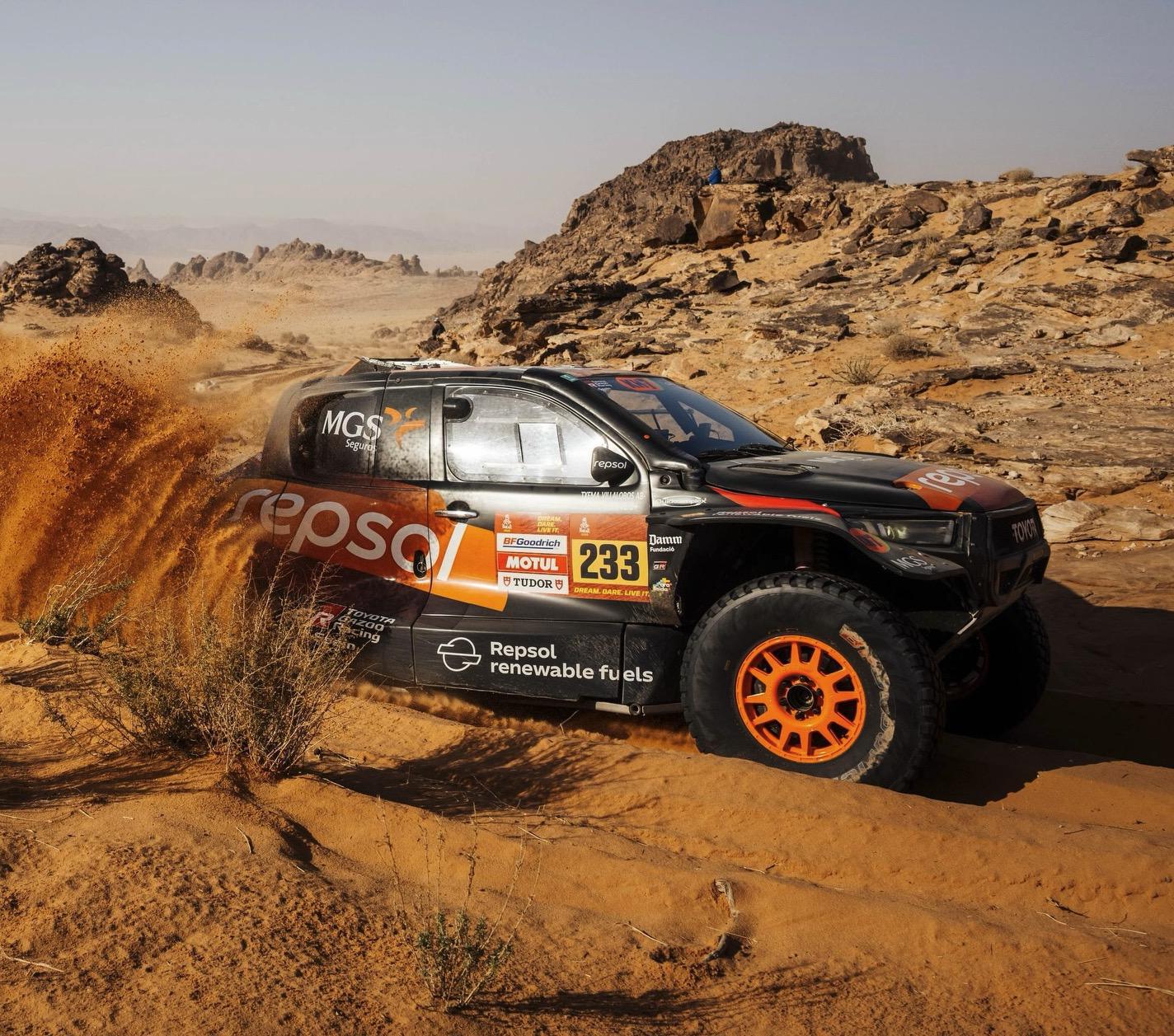 Esteve competía al volante de la Toyota Hilux T1+ con el número 233. Iba acompañado por su copiloto, Txema Villalobos, en esta edición de la prueba.
