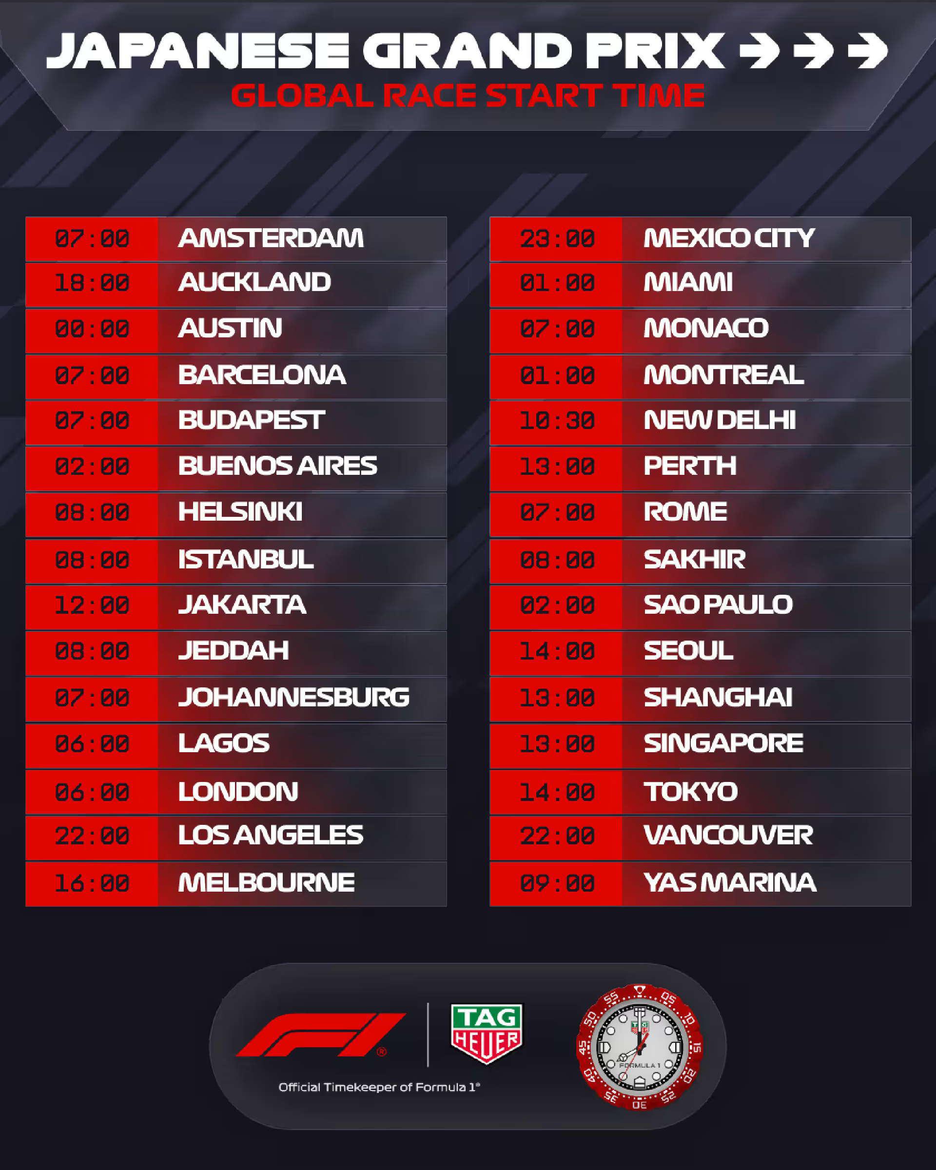 HORARIOS DEL GP DE JAPÓN (HORA LOCAL)